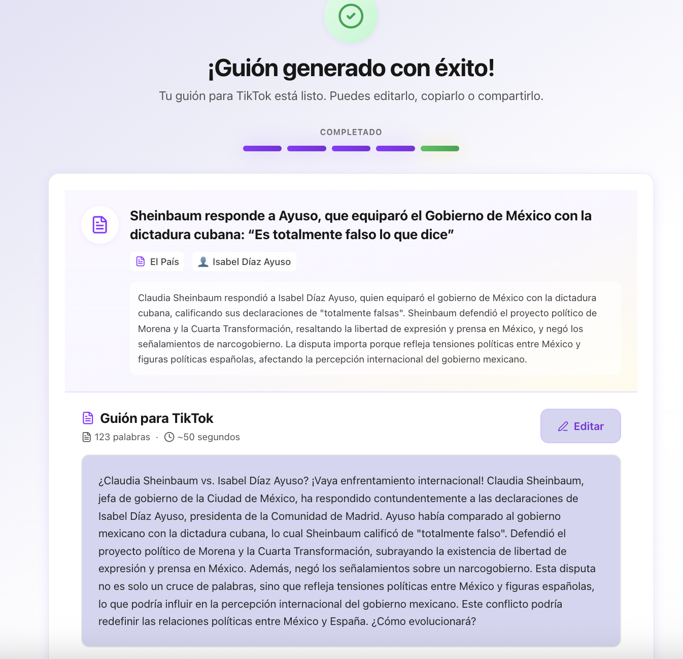"Vamos a leer la noticia, analizarla y convertirla en guión para TikTok."